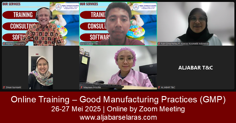 Aljabar Training & Consulting sebagai perusahaan konsultan yang salah satunya memberikan pelayanan jasa training (public dan In house) dan konsultasi setup serta pengembangan sistem manajemen, bermaksud menyelenggarakan Training Good Manufacturing Practices (GMP) yang direkomendasikan untuk diikuti.